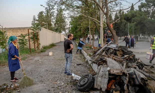 Đường phố Nagorno-Karabakh ngổn ngang vì giao tranh. Ảnh: GETTY IMAGES