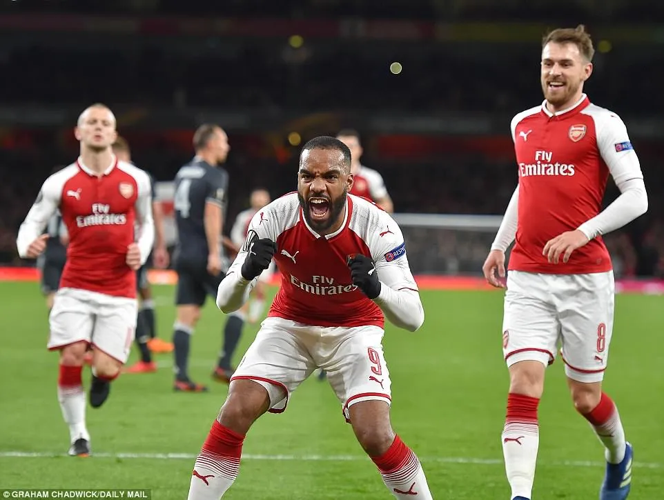 Lacazette cũng có hai bàn thắng như Ramsey ở trận này.