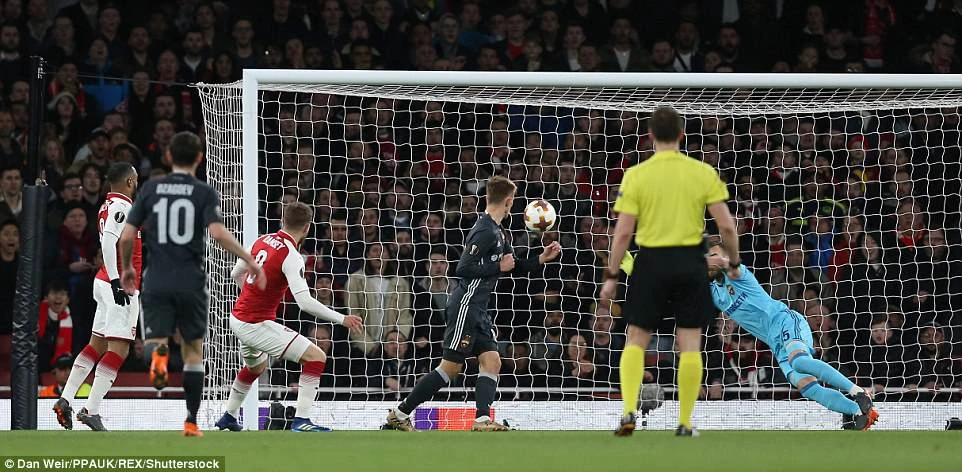 Phút 23, Schennikov phạm lỗi không rõ ràng với Ozil trong vòng cấm, sau ít giây lưỡng lự, trọng tài cũng chỉ tay vào chấm 11m trước sự phản đối của cầu thủ CSKA Moscow.