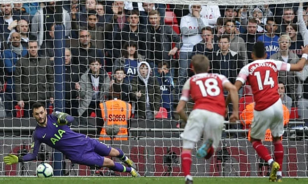 Mười phút cuối trận đấu càng trở nên hấp dẫn khi ở phút 90 trung vệ Davinson Sanchez kéo ngã Aubameyang trong vòng cấm mang về cho Arsenal tình huống phạt đền. Nhưng đứng trước cơ hội mang về cho Arsenal ba điểm, Aubameyang lại không thể đánh bại thủ môn Lloris của Tottenham. Không chỉ mất cơ hội chiến thắng, Arsenal còn phải chơi thiếu người khi tiền vệ Lucas Torreira nhận thẻ đỏ trực tiếp.