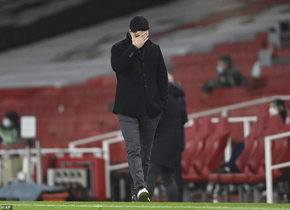 HLV Arteta nhận định do thi đấu liên tục khiến Arsenal cảm thấy mệt mỏi dẫn đến kết quả không tốt với Crystal Palace. Ảnh: AP.