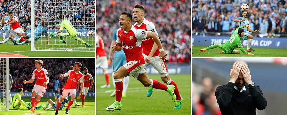 Hòa nhau 1-1 sau 90 phút, hai đội phải bước vào hiệp phụ, và sự tỏa sáng của ngôi sao đã quyết định số phận trận đấu. Phút 101, trong tình huống lộn xộn trước khung thành Man City, Sanchez có pha ra chân chớp thời cơ cực nhanh ghi bàn nâng tỉ số lên 2-1 cho Arsenal.