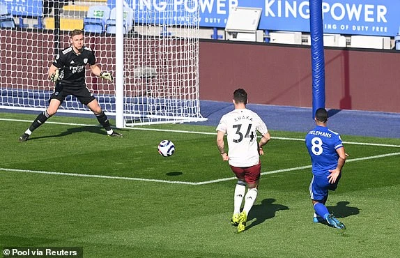 Trên chấm 11 mét, Lacazette dễ dàng đánh bại thủ môn Schmeichel để giúp Arsenal bước vào giờ nghỉ giữa hiệp với lợi thế dẫn trước 2-1.