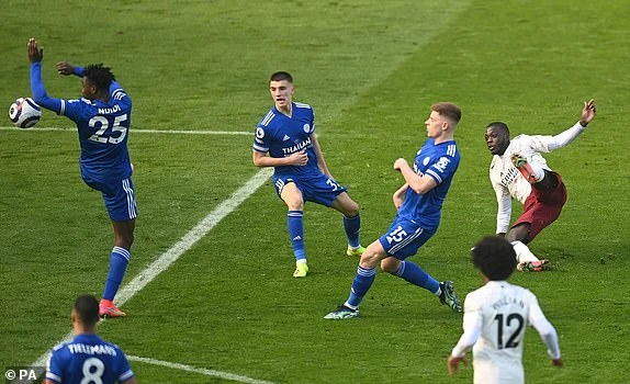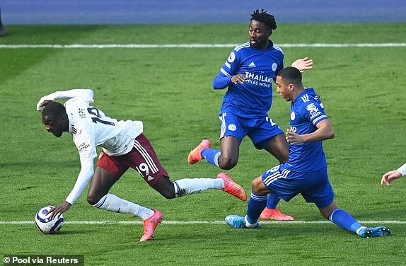 Ndidi để bóng chạm tay trong vòng cấm khiến Leicester City chịu phạt đền ở phút bù giờ hiệp một...Ảnh: PA.