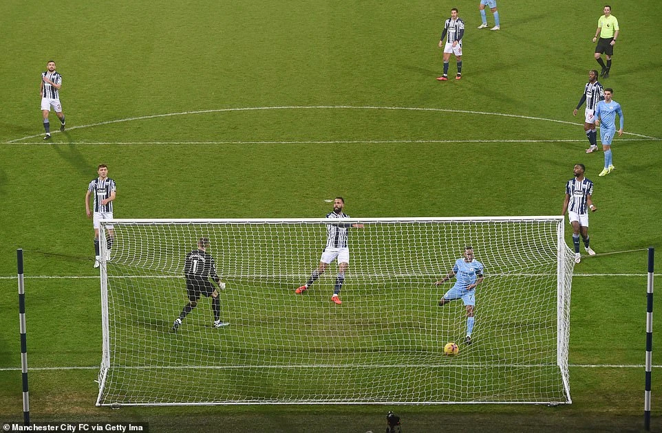 Khoảng thời gian bù giờ hiệp một, Man. City tiếp tục có thêm bàn thắng khi Sterling có pha tạt bóng cho Mahrez một mình giữa vòng vây hậu vệ West Brom cứa lòng đưa bóng vào góc cao, giúp Man. City khép lại hiệp một với tỷ số dẫn trước 4-0.