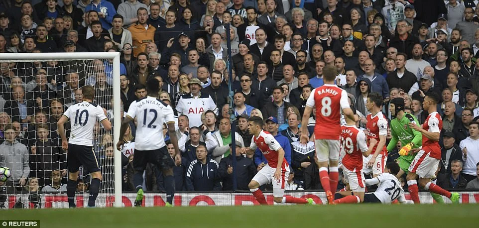 Tuy nhiên, hết Kane rồi Dede Alli, Vertonghen và đặc biệt là Eriksen đều không thể ghi bàn dù cơ hội họ tạo ra là khá rõ rệt. Trong khi đó, Arsenal tạo được ít sóng gió hơn về phía khung thành Lloris. Tình huống đáng kể nhất của Arsenal là pha đòi… penalty bất thành của Gibbs ở những phút đầu trận.