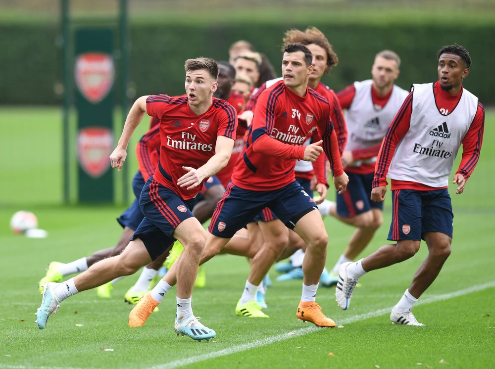Các cầu thủ Arsenal sẽ trở lại sân tập vào tuần tới để chuẩn bị cho bóng Ngoại hạng Anh dự kiến lăn trở lại. Ảnh: TS