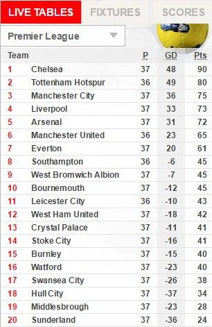 Chỉ cần Man City hòa Watford, còn Liverpool thắng đội đã rớt hạng Middlesbrough ở vòng cuối thì mọi nỗ lực trong thời gian gần đây của Arsenal với những trận thắng liên tiếp sẽ đổ sông đổ bể. Không thể nắm quyền tự quyết, sẽ là bất ngờ lớn nếu Arsenal vẫn lọt vào top 4 khi mùa giải này kết thúc.