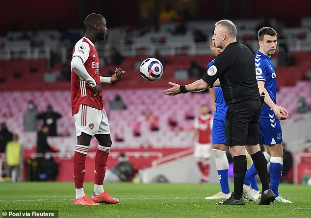 Arsenal mất phạt đền, sau khi trọng tài xem lại VAR. Ảnh: Reuters.