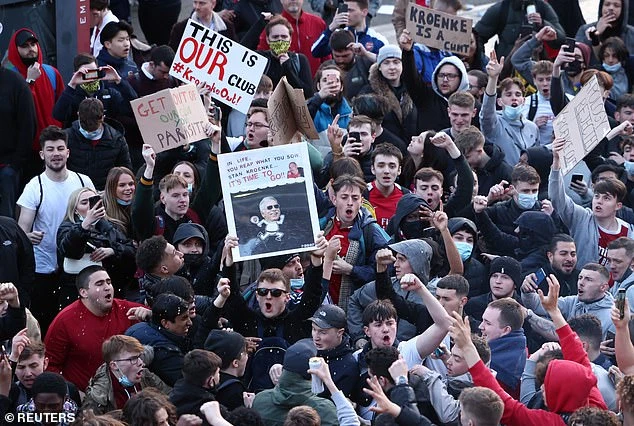 Trước trận đấu với Everton, CĐV của Arsenal đã kéo nhau biểu tình. Ảnh: Reuters