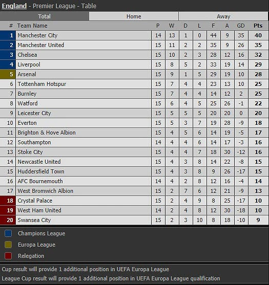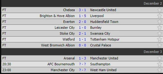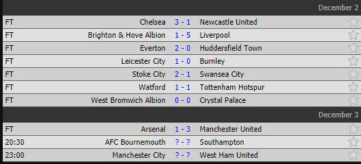 Trong khi đó, trận thua này khiến Arsenal tụt xuống thứ 5 trên bảng xếp hạng Premier League khi trước đó Liverpool thắng Brighton & Hove Albion đến 5-1. Ở trận đáng chú ý khác, Tottenham đã bị Watford cầm hòa 1-1. Trận đấu sớm nhất vòng 15, Chelsea ngược dòng thắng Newcastle 3-1 trên sân nhà.