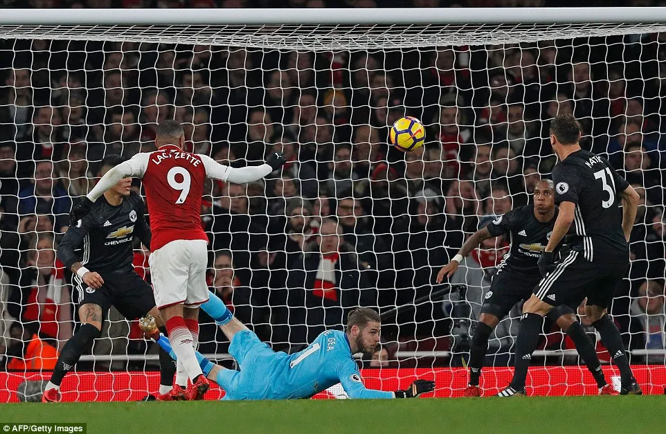 Ngay sau tình huống này, De Gea có pha cản phá có thể nói là hay nhất ở giải ngoại hạng Anh đến thời điểm này. Phút 56, Lacazette thoát xuống trống trải và sút bóng rất căng ở cự ly gần nhưng không biết bằng cách nào mà De Gea lại nhoài người dùng tay đẩy bóng ra được, Sanchez lao vào sút bồi cũng bị De Gea kịp bật dậy dùng… chân cản phá nốt.