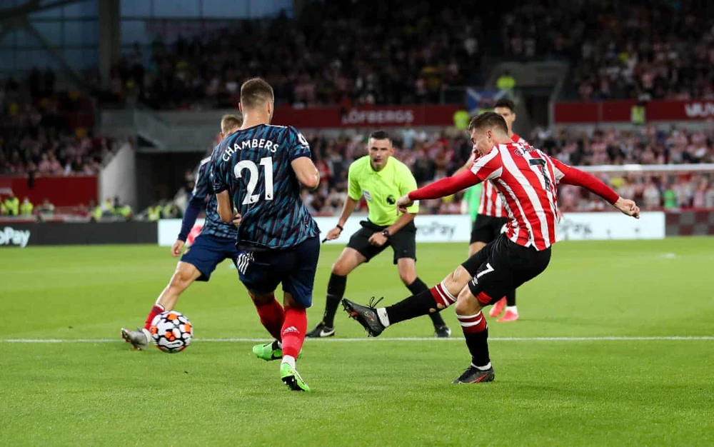 Bất ngờ tiếp tục đến với Arsenal ở phút 73, khi Brentford có được bàn thắng nhân đôi cách biệt. Từ tình huống cầu thủ đội chủ nhà ném biên đưa bóng vào vòng cấm, bộ đôi trung vệ của Arsenal lại đánh đầu phá bóng hụt, tạo cơ hội cho tiền vệ Noergaard băng vào đánh đầu nâng tỷ số lên 2-0 cho Brentford.