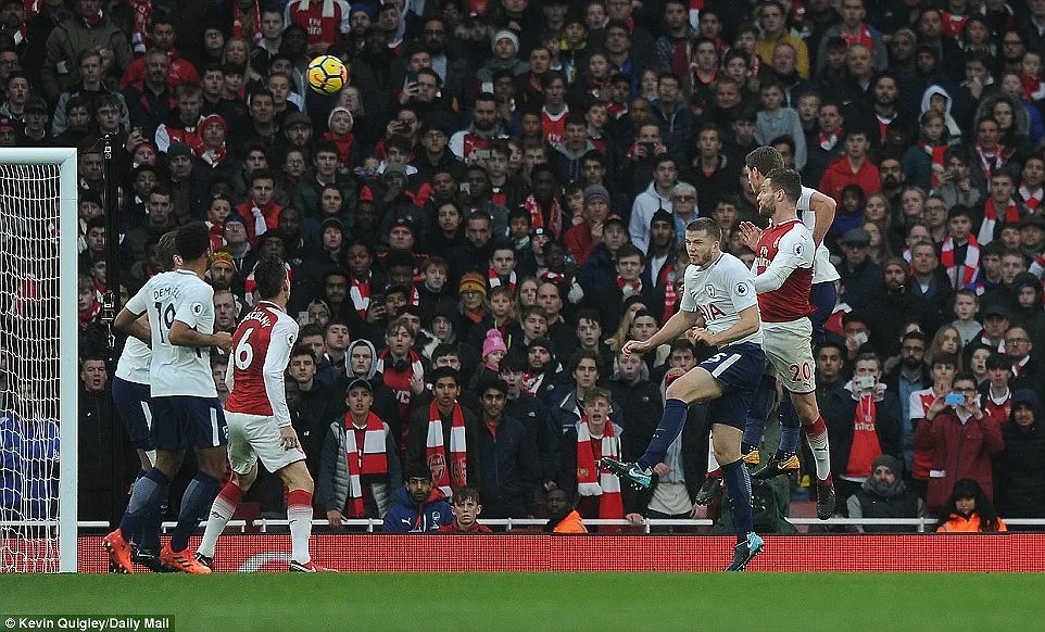 Cơ hội rõ ràng nhất của Tottenham ở hiệp đấu này là pha dứt điểm chạm cột dọc ra ngoài của Eriksen. Đáng buồn hơn, ngay sau tình huống bỏ lỡ này, Tottenham phải nhận bàn thua. Phút 37, từ quả đá phạt bẹn cánh trái, Ozil treo bóng vào cho Mustafi bật cao đánh đầu lái bóng vào góc xa mở tỉ số 1-0 cho Arsenal.