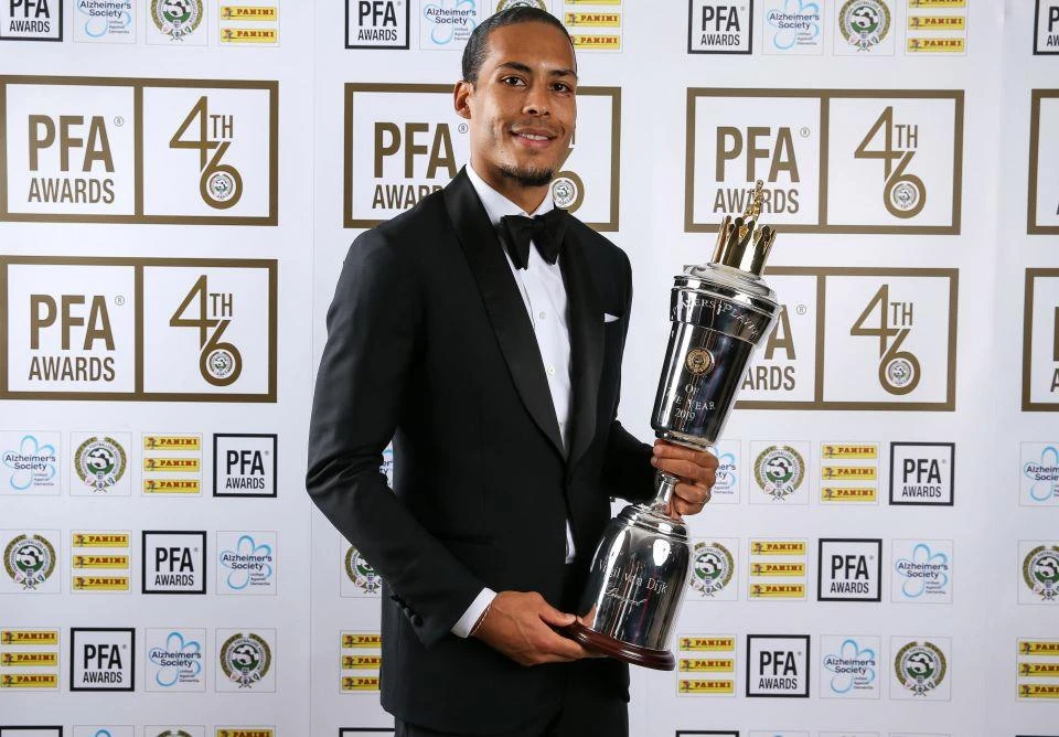 Virgil van Dijk nhận giải Cầu thủ xuất sắc nhất PFA. Ảnh: REUTERS