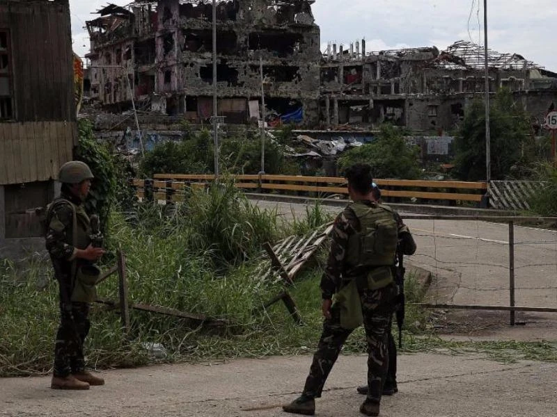 Các binh sĩ Philippines canh gác sau khi họ đẩy lùi các chiến binh thân IS ra khỏi khu vực Saduc Proper ở TP Marawi. Ảnh: REUTERS