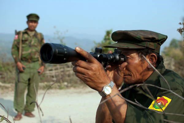 Các tay súng từ tổ chức vũ trang quân đội độc lập bang Kachin tuần tra