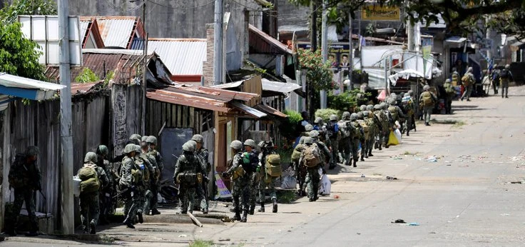 Binh sĩ Philippines vẫn truy quét nhóm khủng bố Maute thân IS ở TP Marawi, vùng Mindanao (Philippines). Ảnh: AFP