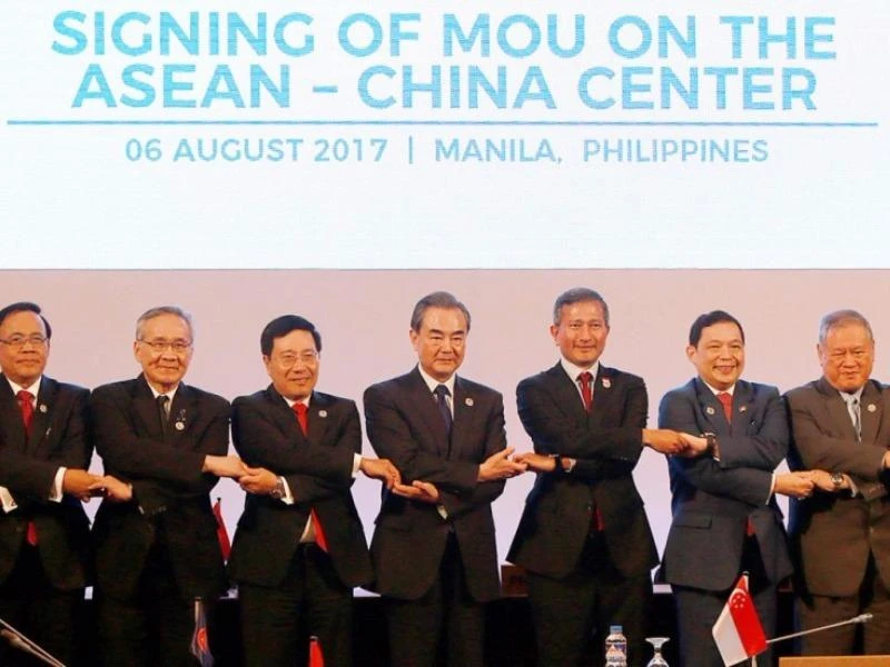 ASEAN và Trung Quốc ký kết biên bản ghi nhớ về việc thành lập Trung tâm ASEAN - Trung Quốc hôm 6-8. Ảnh: SCMP