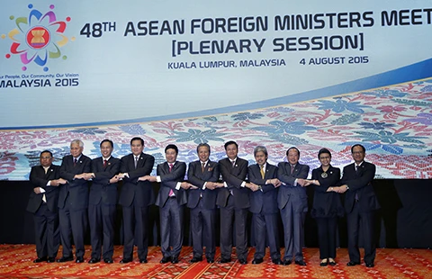 Các bộ trưởng ngoại giao ASEAN chụp ảnh lưu niệm ngày 4-8 tại Kuala Lumpur (Malaysia). Ảnh: AP