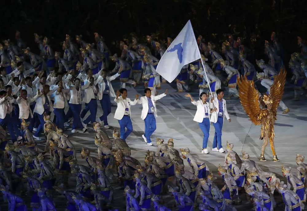 Trong buổi diễu hành trên sân Bung Karno ở đêm khai mạc Asiad 18, hai đoàn thể thao của hai miền Triều Tiên lại diễu hành dưới ngọn cờ chung “thống nhất hai miền Triều Tiên”.