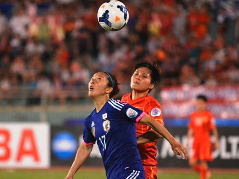 Nỗ lực của các cô gái Việt Nam trước đương kim vô địch Nhật. Ảnh: PV