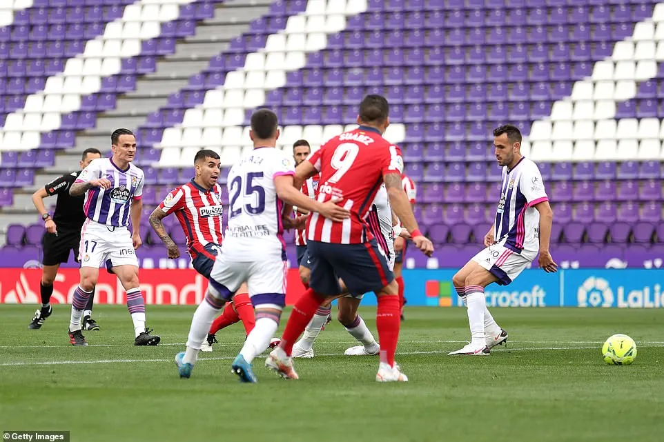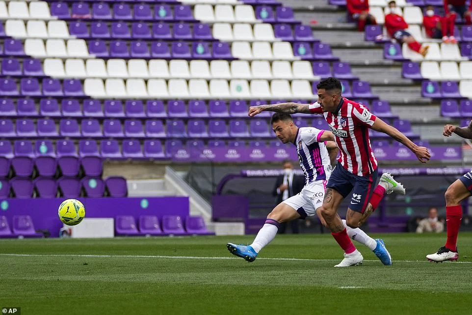 Real Valladolid khiến cuộc đua vô địch thêm kịch tính khi chọc thủng lưới Atletico Madrid ở phút 18. Ảnh: AP.