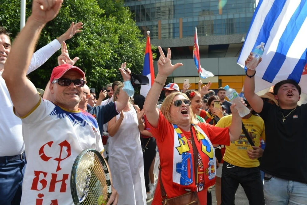Fan của Djokovic reo mừng sau khi thẩm phán phiên tòa tuyên anh thắng kiện. ẢNH: GETTY