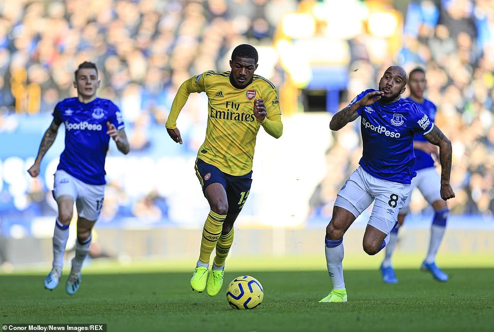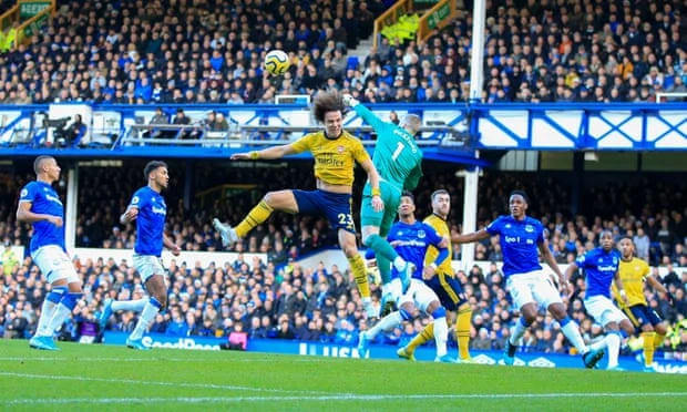 Đến chơi trên sân Goodison Park nhưng với đội hình phong độ không ổn định, Arsenal không thể triển khai được lối chơi tấn công có nét. Mặc dù có trong tay mũi nhọn tấn công là Aubameyang nhưng với lối chơi áp sát của chủ nhà Everton, vì thế trong 45 phút hiệp một “pháo thủ” chỉ có thể cầm bóng được 53%. Thế trận giằng co khiến hai đội hiếm khi có cơ hội xâm nhập vòng cấm đối phương để có bàn thắng mở điểm.
