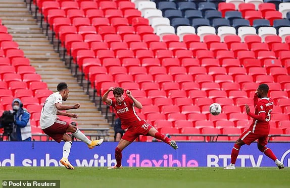 Hòa 1-1 sau 90 phút thi đấu chính thức, Arsenal và Liverpool bước ngay vào loạt sút luân lưu phân định thắng thua chứ không đá thêm 2 hiệp phụ.
