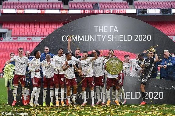 Cầu thủ Arsenal ăn mừng siêu cúp nước Anh. ẢNH: GETTY IMAGES