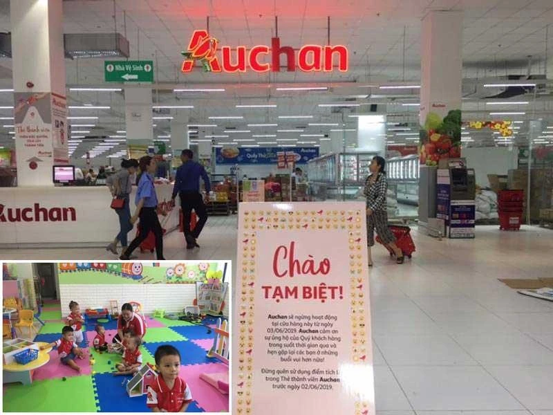 Auchan chào tạm biệt khách hàng trong những ngày cuối, vì thế hình ảnh nhà trẻ chăm sóc con của nhân viên như thế này cũng sẽ không còn. Ảnh: THU HÀ