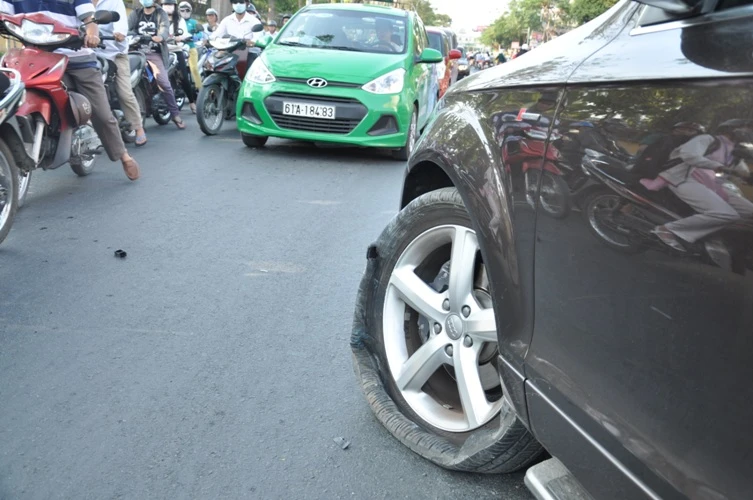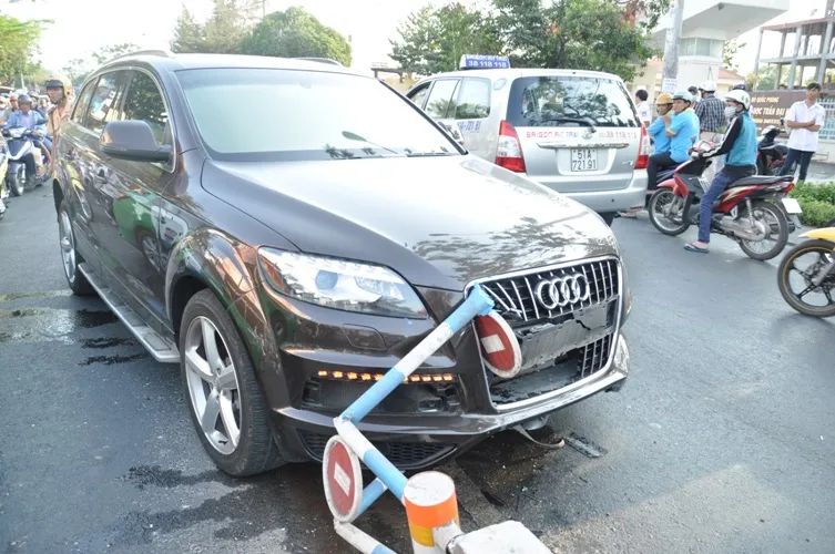 Theo một người dân chứng kiến kể lại, do có hai chiếc xe máy đi phía trước va quẹt nhau rồi ngã ra đường. Tài xế điều khiển xe Audi trờ tới không kịp thắng đã lách qua trái, tông vào dải phân cách giữa đường và mắc kẹt tại đây.