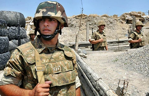 Bộ cho biết đêm hôm trước, phía Armenia (ảnh) đã bắn pháo, dùng súng phóng lựu và súng máy tấn công. Ngược lại, Bộ Quốc phòng Armenia cho biết phía Azerbaijan đã tấn công bằng pháo và xe tăng.