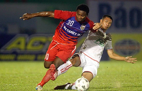 Dù thiếu nhiều “át bài” nhưng HLV Lê Thụy Hải cũng bố trí một đội hình được xem là tối ưu. Trong khu thành là Tấn Trường. Hàng hậu hệ gồm Văn Hoàn (phải), Minh Đức và Đình Luật (trung vệ), Robert (trái). Hàng tiền vệ có Tiến Thành và Văn Bình chơi giữa sân, bên trái có Quang Vinh, bên phải có Tăng Tuấn. Cặp tiền đạo là hai ngoại binh gồm Abass và Oseni.