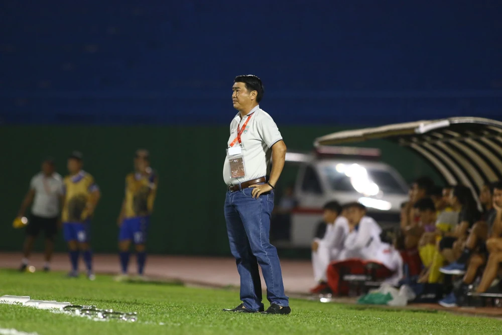 HLV Trần Minh Chiến chỉ còn biết nhìn và không phản ứng kịp để điều chỉnh những bàn thua đầy bất ngờ, chóng vánh và thậm chí là rất khó hiểu nơi hàng phòng ngự B. Bình Dương lẫn thủ môn Tấn Trường.