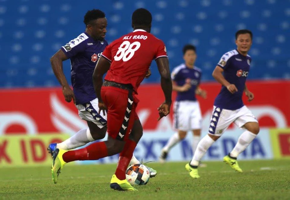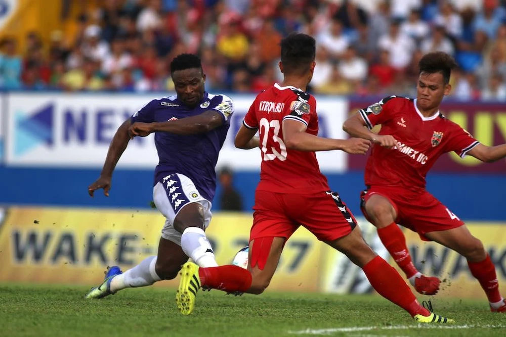 Oseni có bàn rút ngắn 1-2 cuối hiệp 1 cho Hà Nội