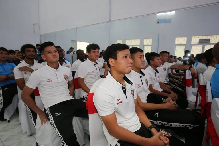 Các cầu thủ B. Bình Dương dự buổi lễ xuất quân và giới thiệu áo đấu Kamito. Ảnh: A. PHƯƠNG