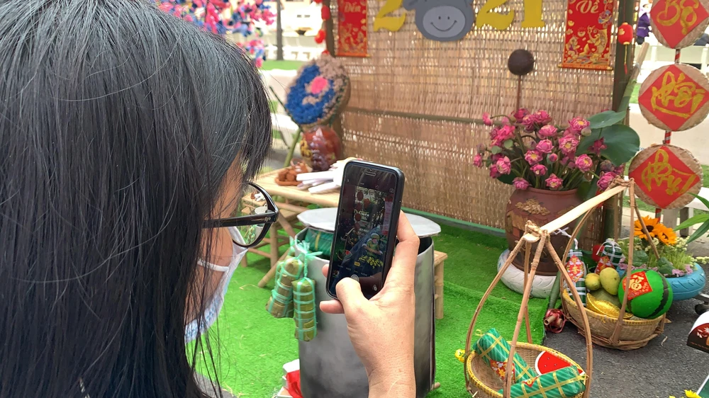 Chị Mai Thị Ngọc Hiền nhiều lần tham quan đường hoa để cảm nhận không khí Tết. Ảnh: HL