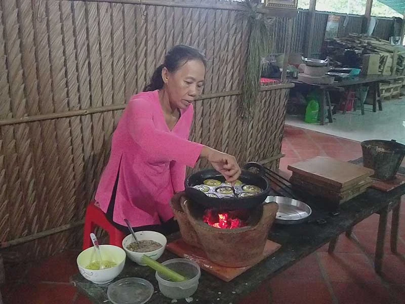 Lấy một miếng bánh da lợn cho vào miệng, nam du khách liền quay sang người bạn đi cùng: “Bánh ngon và có mùi thơm lạ lắm, không giống bánh mình mua ở chợ, em ăn thử đi”. Nữ du khách liền ăn thử bánh và gật gù tỏ ra đồng tình. Hai người lần lượt thử từng loại bánh, luôn miệng khen ngon và không quên chụp ảnh làm kỷ niệm. Sau khi được đã miệng với “búp phê” bánh dân gian, hai du khách chuyển sang trải nghiệm làm bánh khọt. Tất cả nguyên liệu làm bánh đã được bà Bảy Muôn chuẩn bị sẵn để khách tự tay đổ bánh và bà đứng cạnh bên hướng dẫn. Nam du khách chăm chú xem và dùng điện thoại ghi lại những khoảnh khắc thú vị. Tiếng cười nói rôm rả cả căn nhà.