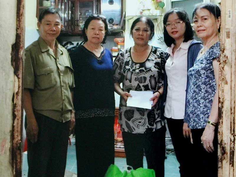 Bà Phan Thị Nguyệt, Bí thư chi bộ, Trưởng khu phố 3 (thứ hai từ trái sang), cùng khu phố đi tặng quà cho các hộ khó khăn. Ảnh: LT
