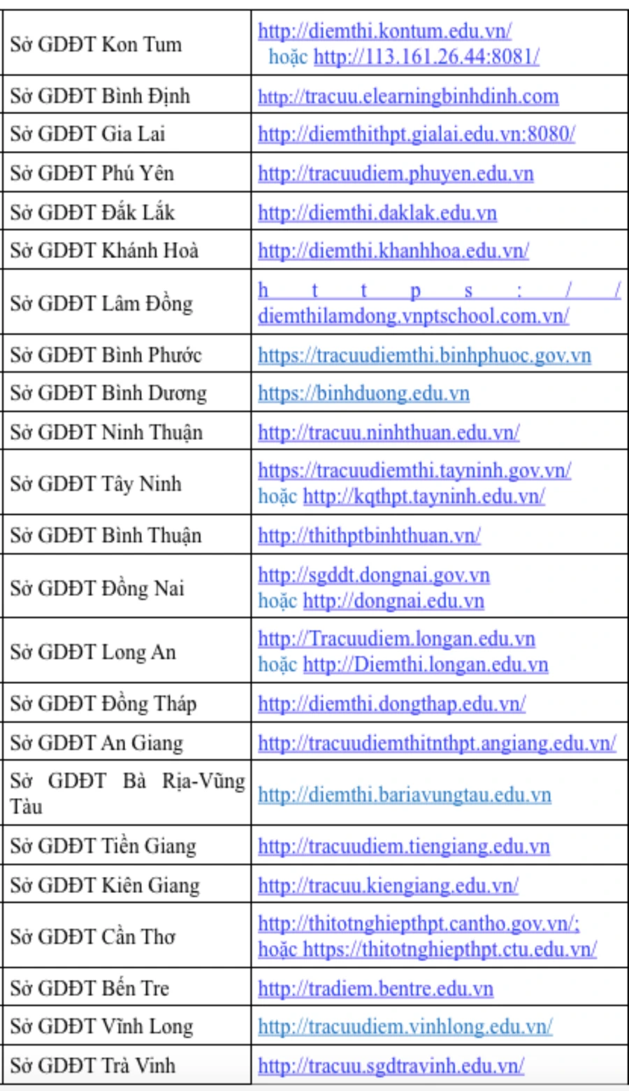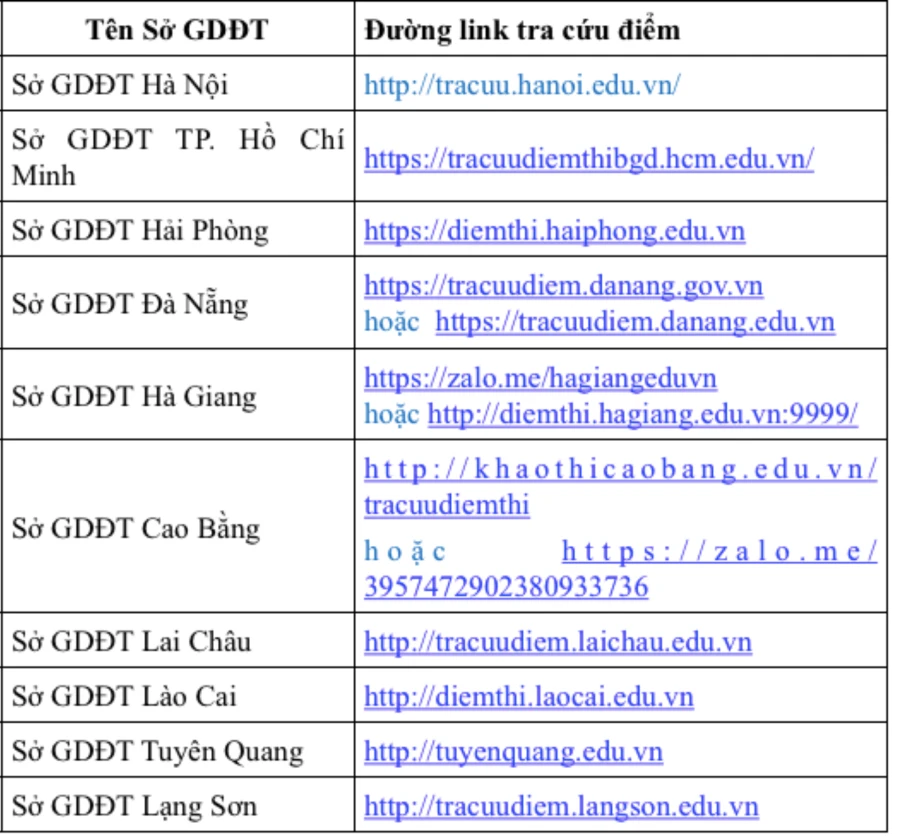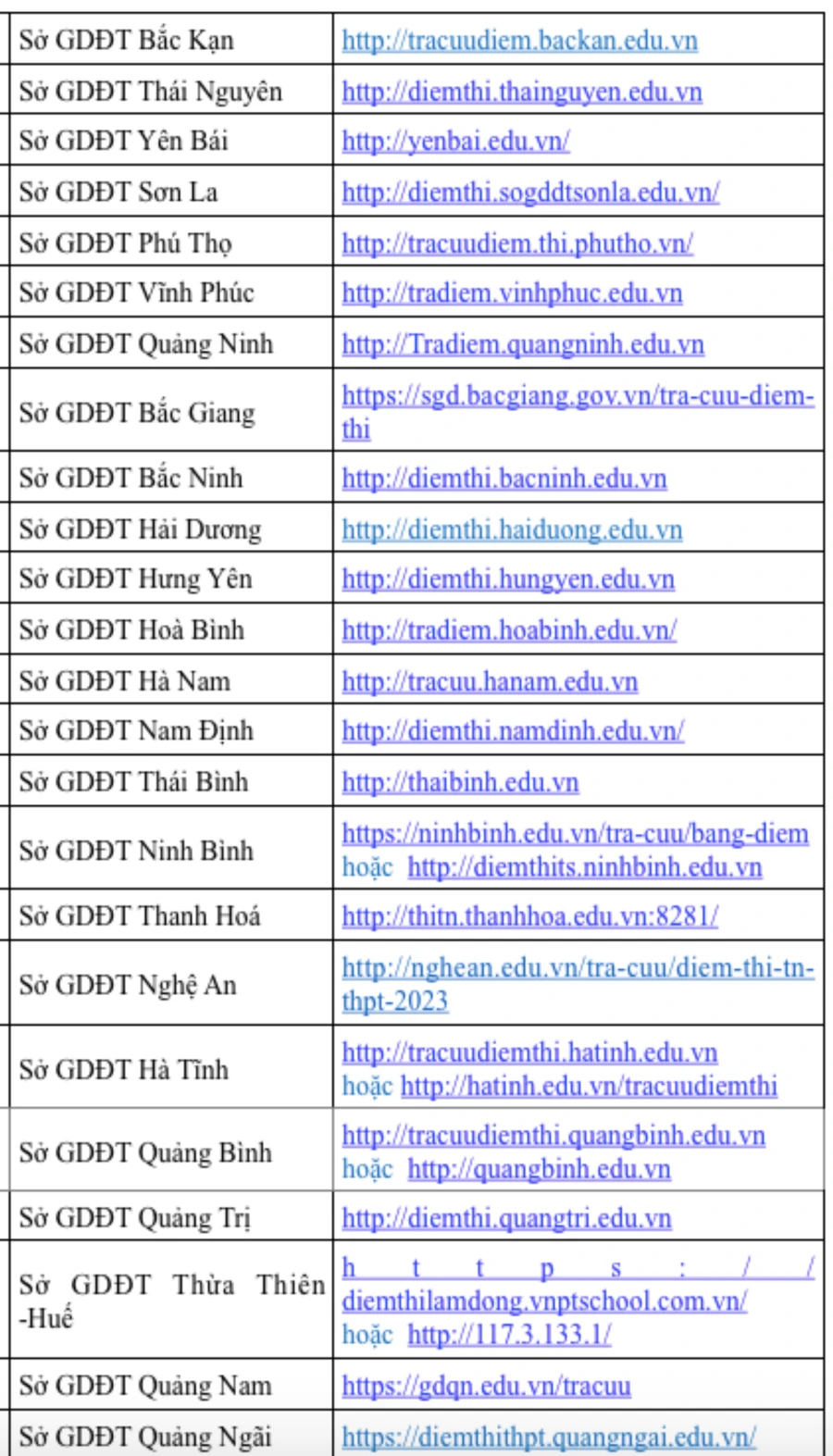 Cách 3: Thí sinh có thể tra cứu điểm thi theo hệ thống của các Sở GD&ĐT địa phương. Link tra cứu điểm thi tốt nghiệp THPT của 63 tỉnh, thành như sau: