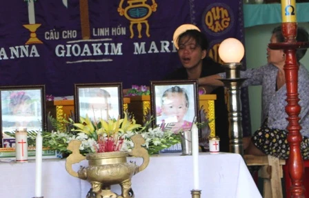 Ba cháu bé đang được để ở nhà bà nội chuẩn bị đưa đi mai táng.