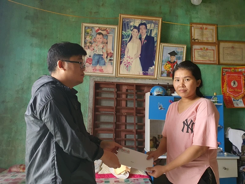 Trong ngày, đoàn cứu trợ đã trao số tiền do bạn đọc hảo tâm, mạnh thường quân của báo hỗ trợ cho chín hộ đặc biệt khó khăn, mỗi hộ 10 triệu đồng.