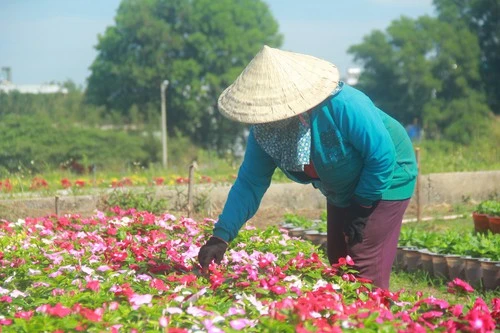 Các chủ vườn tất bật chăm sóc hoa cho kịp vụ tết. Ảnh: TÂM - HÀ