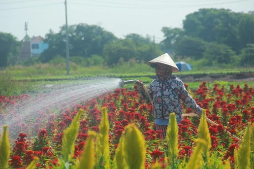 Theo chị Trịnh Thị Kim Lan, người thường xuyên chăm hoa ở các vườn tại khu vực này, năm nay nắng nóng, lại ít mưa nên hoa nở sớm hơn 1-2 ngày so với năm ngoái. Tuy nhiên, cũng tùy kỹ thuật và thời gian gieo trồng của từng hộ, nếu ai trồng sớm thì sẽ nở sớm hơn một chút. Cơ bản là vẫn nở đúng dịp tết, ổn định chứ không mất mùa.