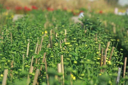 Hoa cúc vàng đang bắt đầu chớm nụ chuẩn bị đón tết. Ảnh: TÂM - HÀ