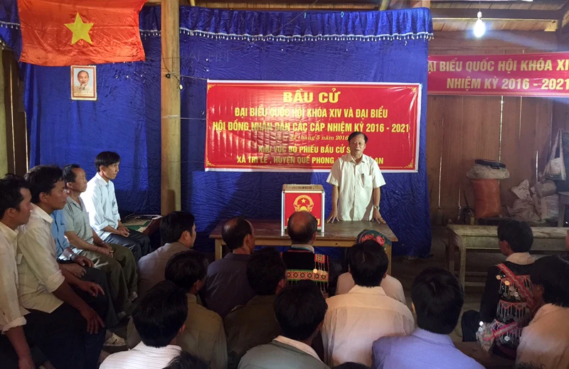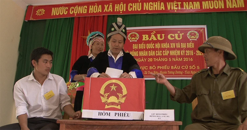 Cử tri bản Phà Lõm, xã Tam Hợp (huyện miền núi Tương Dương, Nghệ An) đi bỏ phiếu bầu chọn ra người đại diện cho tiếng nói và nguyện vọng của dân. Ảnh: NTV