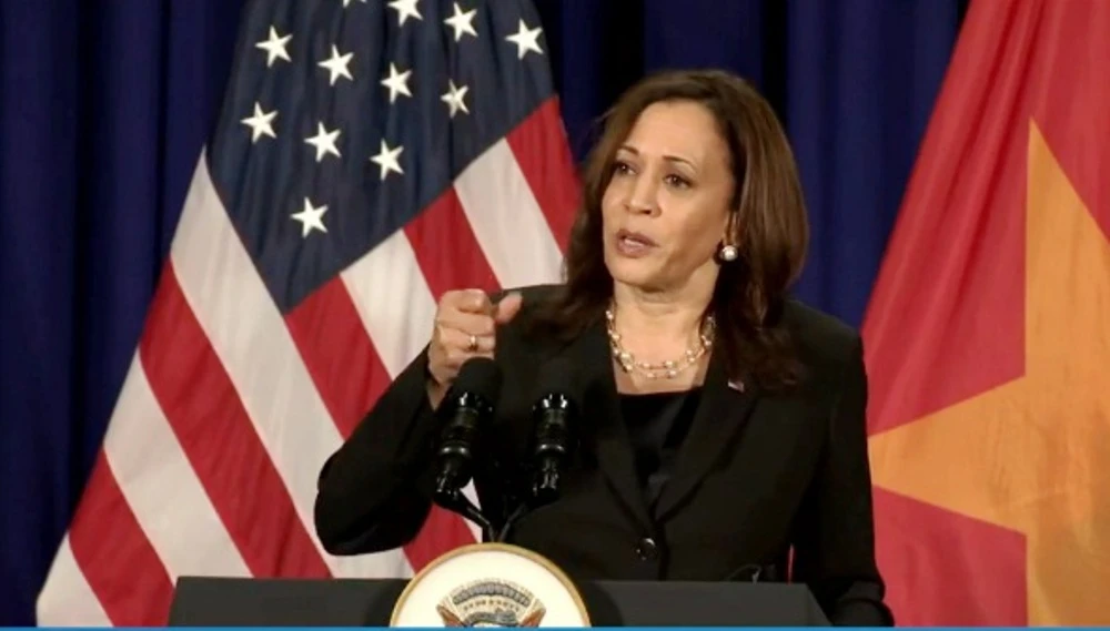 Ngày 26-8, kết thúc chuyến thăm chính thức tới Việt Nam, Phó tổng thống Mỹ Kamala Harris đã chủ trì một buổi họp báo tại Hà Nội.