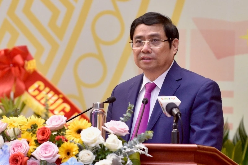 Ủy viên Bộ Chính trị, Bí thư Trung ương Đảng, Trưởng Ban Tổ chức Trung ương Phạm Minh Chính phát biểu tại Đại hội. Ảnh: VGP
